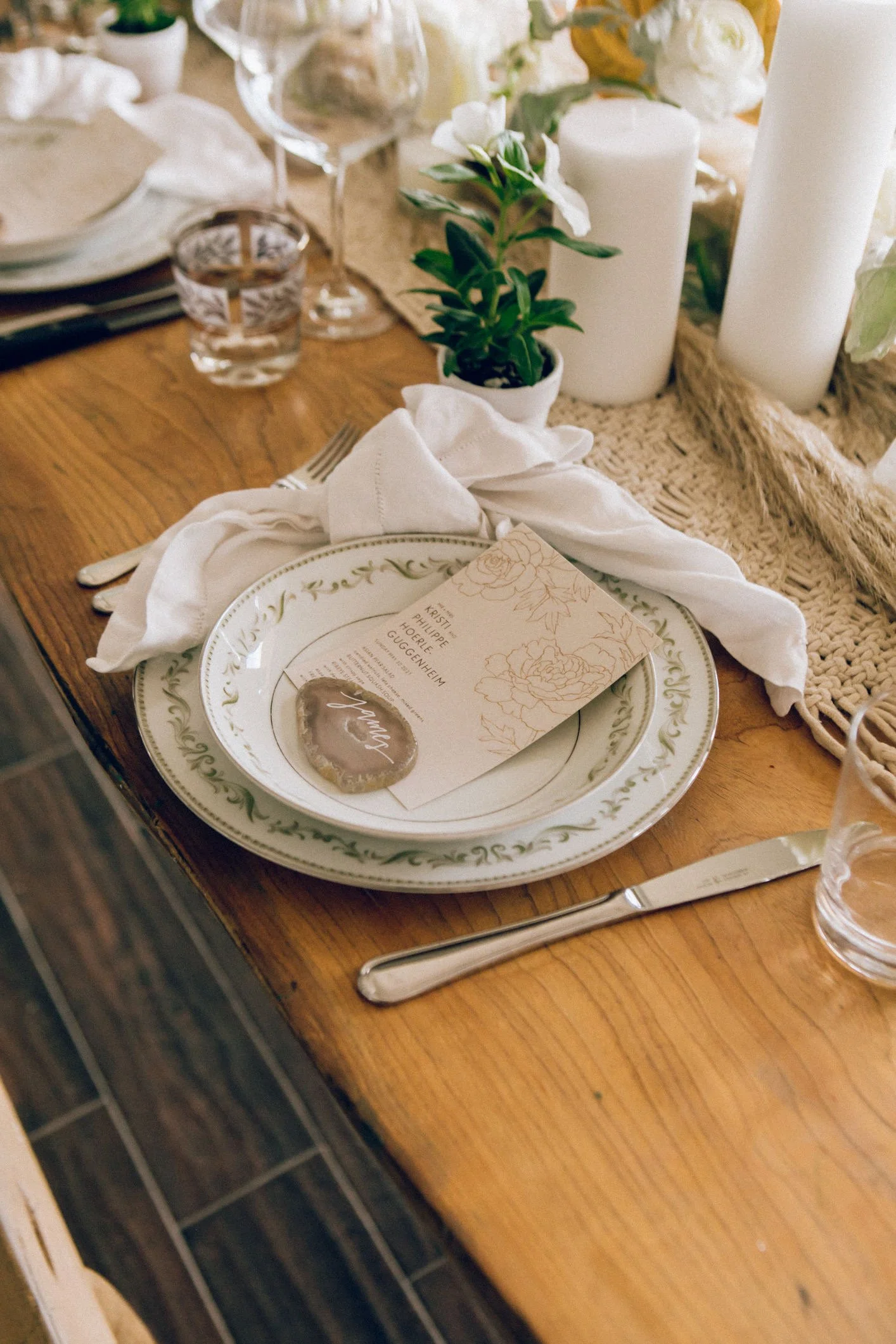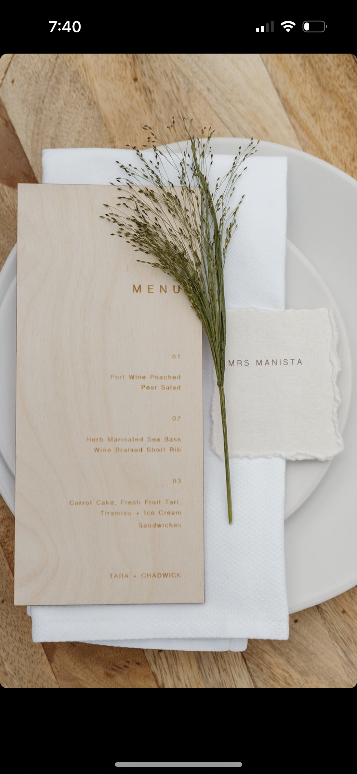 For wedding day items like menus, signage, and seating charts, I recommend booking at least 10 weeks before your event to allow enough time for design, revisions, and production. A 7-week rush turnaround is also available for most items upon request.