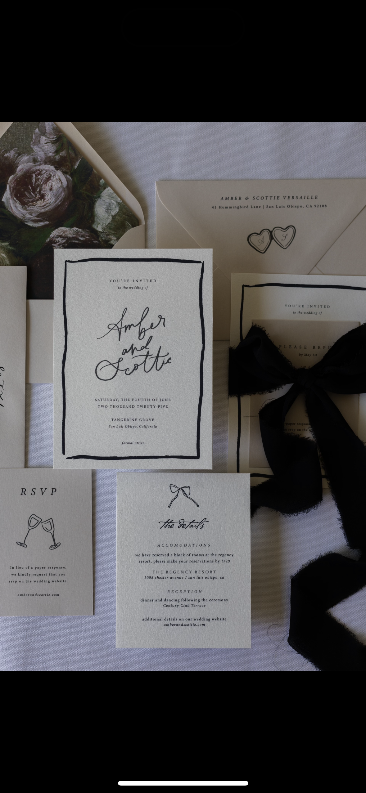After booking, you’ll receive a wording form to personalize all the details. Once that’s complete, I’ll gather your wording and mood board and begin designing your pieces to match your dream wedding.